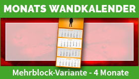 4-Monatswandkalender als Einblock- oder Mehrblock-Variante in Ihrem Corporate Design drucken lassen. Wandkalender mit 4 Monaten.