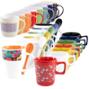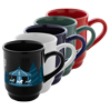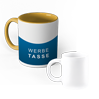 Die Werbetassen gibt es sowohl in Weiß als auch mit vielen verschiedenen Farben. Dabei sind jeweils der Henkel und die Innenseite farbig; die Außenseite bleibt weiß, damit sie gut bedruckt werden kann.